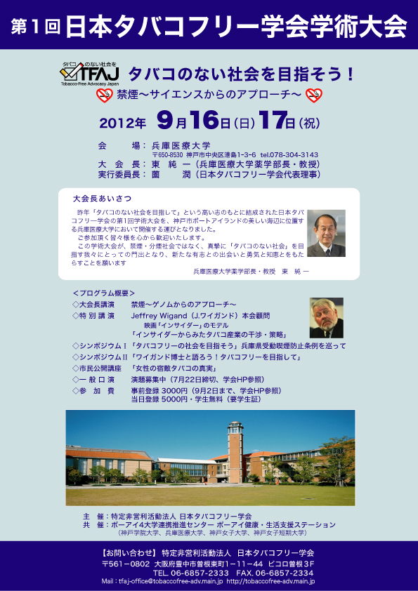 2012.09.17(月)第1回日本タバコフリー学会の市民公開講座 「女性の宿敵 タバコの真実」―女性の肺は男性よりもタバコに弱い―講演